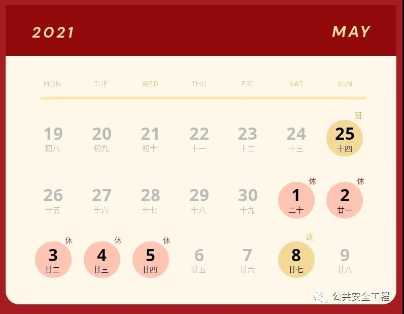 调休时间 4月25日(星期天)、5月8日(星期六)正常上班