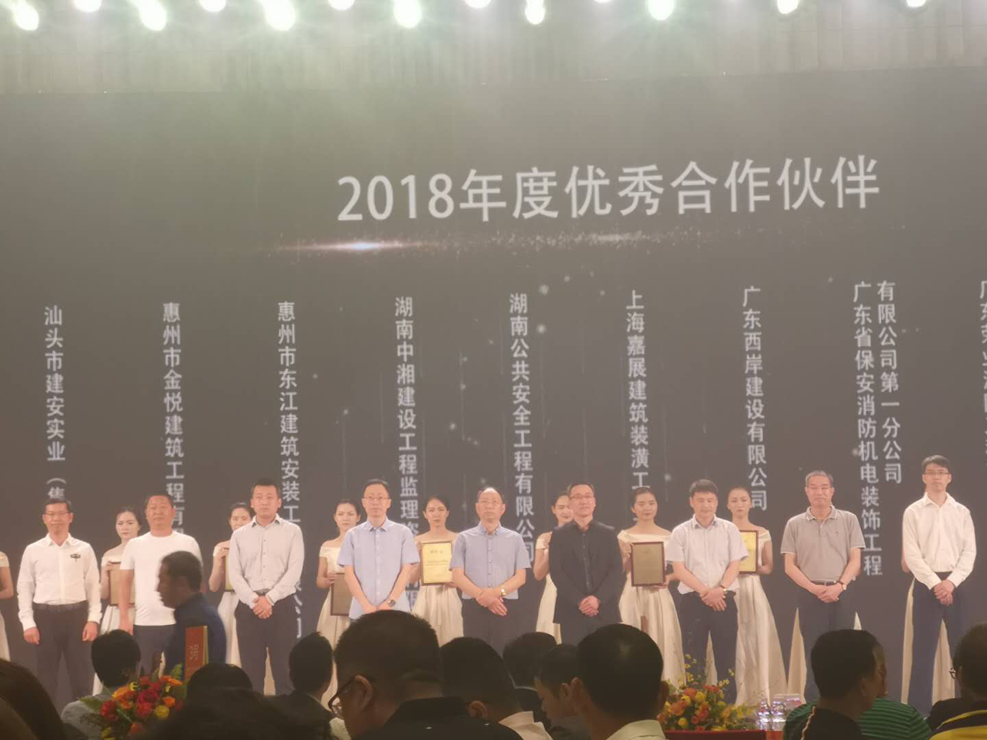2019年4月26日,Bway88必威 董事长皮里先生,应邀参加佳兆业集团成立20周年庆典,并荣获2018年消防工程优秀合作伙伴奖,非常感谢佳兆业集团对Bway88必威 的认可。